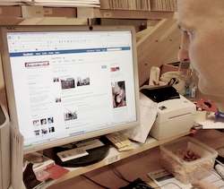 På bilden står Hans och kikar på CyberPhoto´s Facebooksida. På arbetstid. Chefen, vad säger vi om det här?
