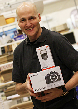 Svårt att välja en systemkamera? Canon har både EOS 500D och 550D som filmar i HD och ger bilder av mycket hög kvalité. Hans i lagershopen rekommenderar att köpa till en bra blixt oavsett vilken du väljer, och då är 430 EXII från Canon ett bra val. Så vill sambon, sonen eller dottern ha en bra systemkamera som tar bra bilder så är detta ett hett julklappstips. Båda finns på lager och blixten likaså!