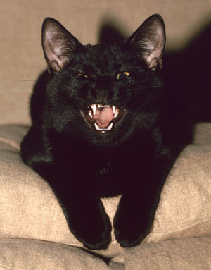Mitt i alla roliga djurbilder så kom jag ihåg en speciell bild jag tog på min otroligt gulliga och snälla katt som hette Snurre. Jag vill påstå att bilden inte återspeglar hans personlighet, bilden togs i slutet i en hjärtlig gäspning... året var 1987 och kameran en Leica R4 om jag inte minns fel...