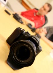 Idag har Magnus på Focus Nordic besökt oss igen! Som alltid har han med sig nya produkter och idag hade han med sig bla nya Samsung NX-10 och Mats dök direkt på den för att göra ett test. Kommer inom kort. Mer produkter var bland annat Panasonic´s nya optik 7-14 och vi fick veta att det kommer en ny kitoptik på 14-42mm, den gamla hade 14-45mm.