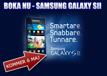 Nu är Samsung Galaxy SII på väg och den kommer till oss 6 Maj! Det är dags att boka om du vill vara bland de första att få den. Skärmen är en 4,27 tum stor Super Amoled, telefonen är lättare än föregångaren och tunnare dessutom. Processor med dubbla kärnor låter tufft men det viktigaste är att detta är en av de smartaste telefoner som någonsin gjorts...