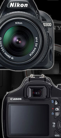 Nikon D3100 är Nikons enklaste modell just nu. Den ger lite högre upplösning än EOS 1100D och även högre upplösning i videoläget. Däremot är 1100D strået vassare i dåligt ljus när det kommer till stillbilder. D5000 är utgående men vi har ett gäng som kommer in i lager under Maj månad. Då får du bättre egenskaper i dåligt ljus än på D3100 och en vinklingsbar skärm. Däremot är D3100 bättre på videofilmning med bättre autofokus och upplösning. D5100 är en nyhet som fokuserar på film med vinklingsbar skärm, mikrofoningång, bra egenskaper i dåligt ljus och bättre autofokus och ljusmätning än någon annan i klassen.