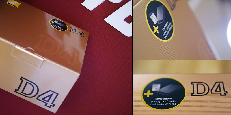 Det har varit mycket snack om XQD och det är smart och trevligt av Nikon att skicka med ett sådant då det är lite klurigt att få tag i minneskorten och det ger ett extra litet leende på läpparna när man får sitt exemplar. Det medföljer D4 som levereras första 3 månaderna från Nikon. Nu ska vi öppna kartongen, packa upp och börja pyssla om vår lilla nytillkomne vän. Nikon D4.