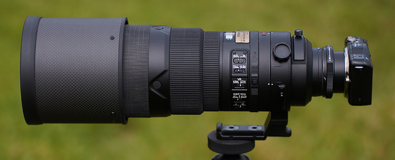På bilden ser du ett Nikon 300/2,8 på en Panasonic GF3. Det ser absurt ut, men är inte så dum idé. Om jag vill ha stort tele till Micro 4/3 så blir detta en 600/2,8 samt att jag kan filma i full HD. Funkar klockrent! Bilden är tagen med Panasonic GH2 + Leica Summilux-M 50/1,4 och då på full öppning, 1,4.