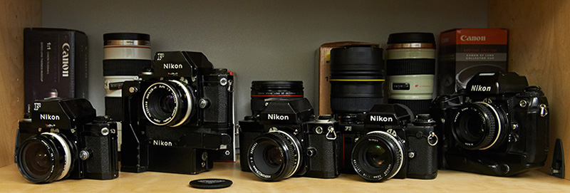 På begäran så lägger jag upp lite bilder från våra kamerahyllor. Kameror från förr...