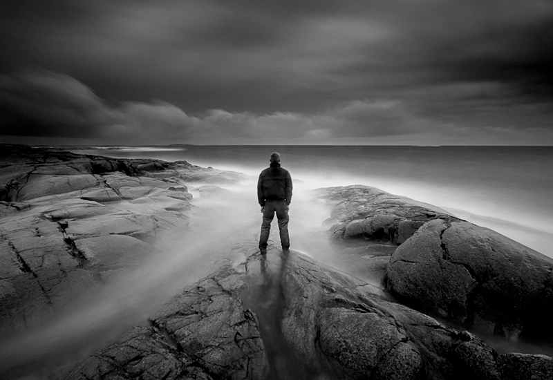 Så här skriver Linus: Håller på med ett litet "projekt" med självporträtt tagna med 1-5 minuters exponeringstid vid kusten. Den här bilden var speciellt svår att ta då det blåste kraftigt vilket gjorde det svårt att stå stilla under den 2 minuter långa exponeringen. Tagen på Åland/Hammarudda med en Canon eos 7D, Canon ef-s 10-22mm, Lee Big stopper ND filter och Lee ND grad 0,9.