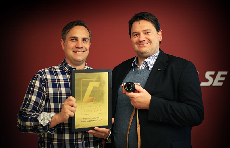 Här ser du Erik och Mac från Panasonic ta emot priset för Årets minsta nyhet, GM1. Det är en riktigt läcker produkt som vi verkligen tagit till oss och du kan läsa hela testet via länken nedan.