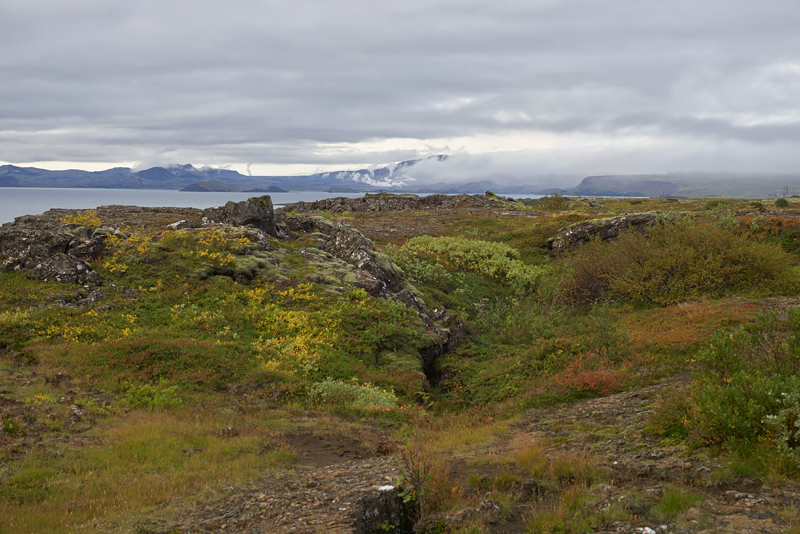 En till bild från Þingvellir. Många färger, men missa inte alla rökpelare i bakgrunden.