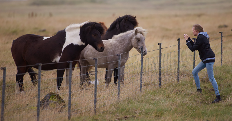 Vissa tider så blåste det storm och här fotograferar Anna några gulliga och tillgivna islandshäster.