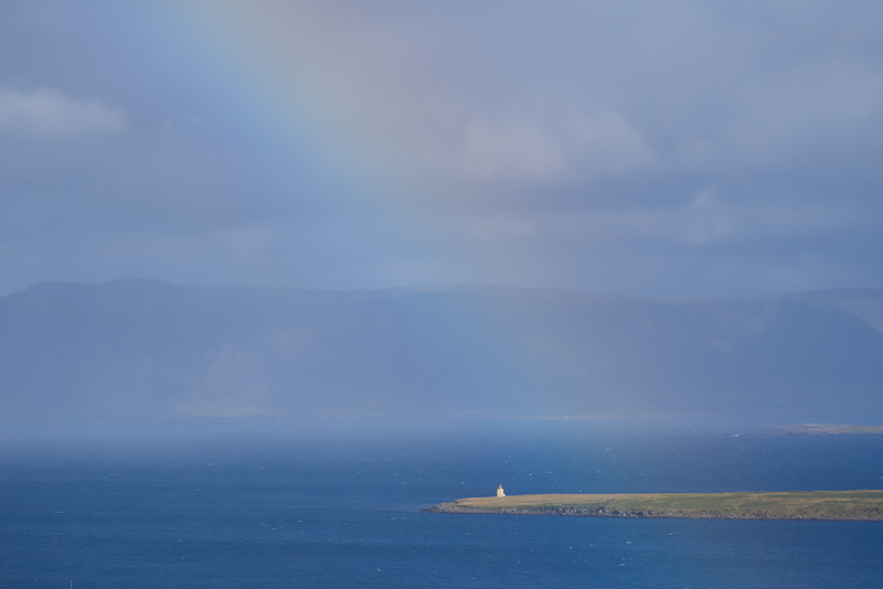 Jag har aldrig sett så många regnbågar som på Island. Denna bild är tagen från toppen av Hallgrímskirkja och visar kusten alldeles vid Reykjavik.