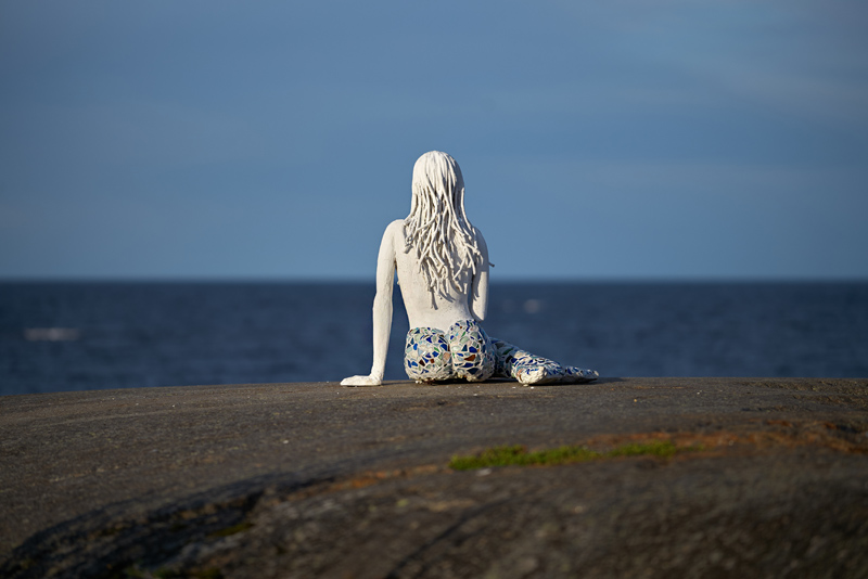 På en geocachingtur kring Bjuröklubb så hittade vi en stig på 1,3km som gick rakt in i skogen till något som hette jungfrugraven och väl där så fanns en skylt till en sjöjungfru 300m längre in, det lät spännande så vi gick dit och fick se detta mitt ute i ingenstans...