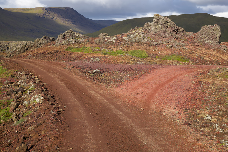 På väg till Hítarvatn så gick vägen genom lavafält och bäckar. Jag tyckte detta var en färgglad korsning. Jag gjorde som Jack Reacher: "Om du tvekar, sväng vänster".
