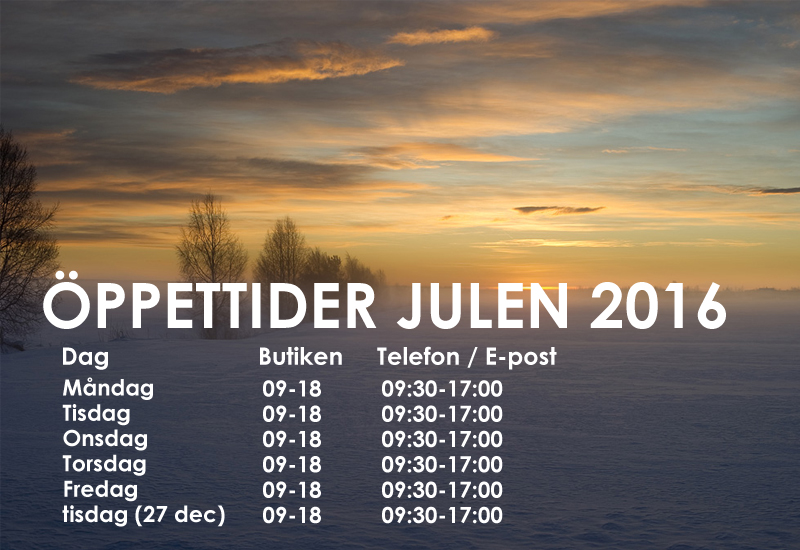 Vi kör öppet alla vardagar och mellandagar och nätbutiken är som vanligt öppen dygnet runt. Du ser öppettiderna i bilden ovan, välkommen att ringa, besöka eller maila oss, vi hjälper dig mer än gärna!