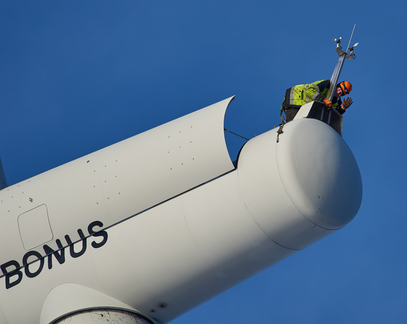 På min senaste isbildsjakt så mötte jag två trevliga killar som servar vindkraftverk. Jag fick känna på deras säkerhetssele som vägde bly. De lär inte behöva gå gym efter en arbetsdag. Att klättra så högt med tung sele och verktyg kräver sin man.