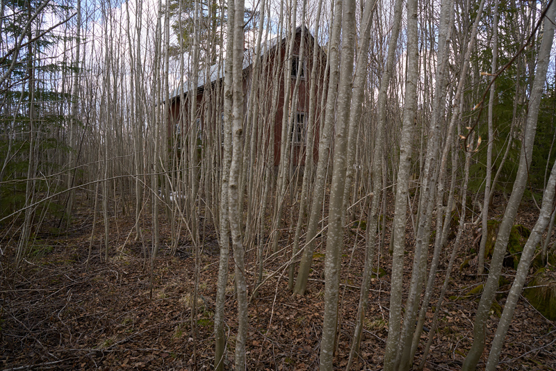 Huset ligger nära vägen, och när vi körde förbi tyckte vi att det var som en skugga i snåren och mycket riktigt stod ett övergivet hus där. Det skulle kunna bli en spännande och väldigt kuslig bild om man väntade till mörkret lagt sig. Men så mycket tid hade jag inte, så färden fick gå vidare. Jag vill inte tråka ut med bara ödehus så imorgon ska vi titta på ett annat hus märkt med Scania Vabis 36.