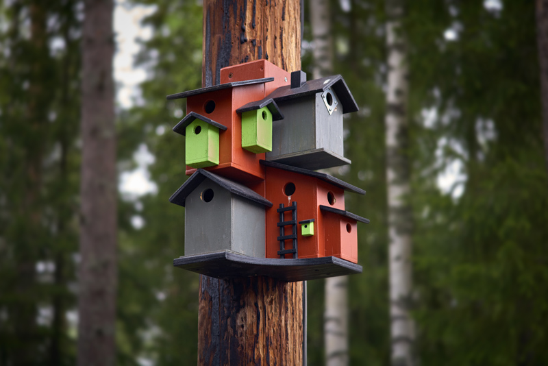 Jag tyckte det var en kul idé med ett flockboende, nu tror jag att alla lägenheter är lediga här, det vore kul om någon skulle flytta in dit. Bilden är tagen med 90mm mest på grund av att det var den största brännvidden som jag hade med mig just då.