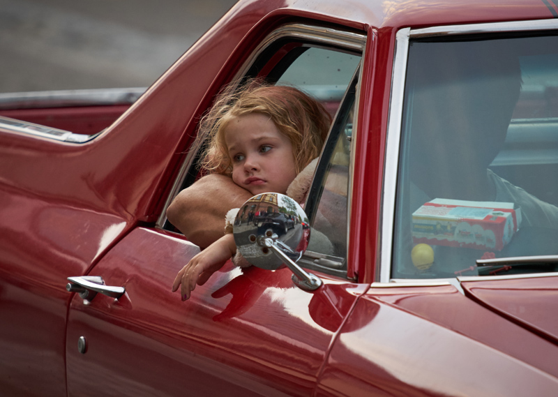 Här har vi en ung dam som verkligen är less på Wheels cruising. I frontrutan skymtar en större förpackning med Kinderägg, helt klart förberedda föräldrar. Det är svårt att bli sötare än så. Bilden är tagen med en Sony A7R II + Canon 70-200/4 IS.