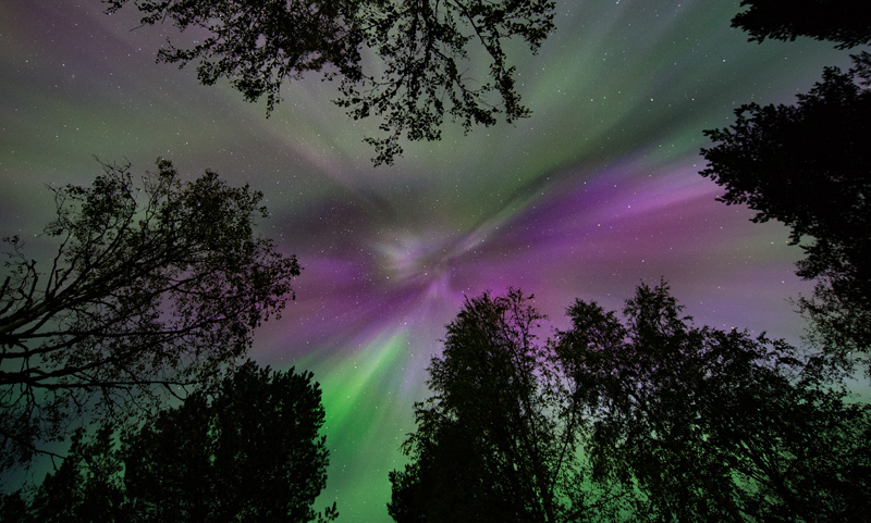På väg hem från att ha fotograferat solnedgången vid en sjö så plingade appen och skvallrade om ett kommande norrsken varpå jag påbörjade vandringen tillbaka till vägen, och där på stigen ligger en hög björnspillning. Kändes inte helt tryggt, så det var bara att försöka låta högt och ta närmaste vägen till bilen. Kändes trevligt att sätta sig levande i bilen. Plötsligt kändes andra sidan av sjön som en bra plats att fotografera norrsken på. Björnar är normalt inte farliga, men jag vill inte träffa någon ändå. Bilden är tagen med Nikon D5 + Nikon 14-24mm på f/2,8, 6s, 14mm och ISO 1600.