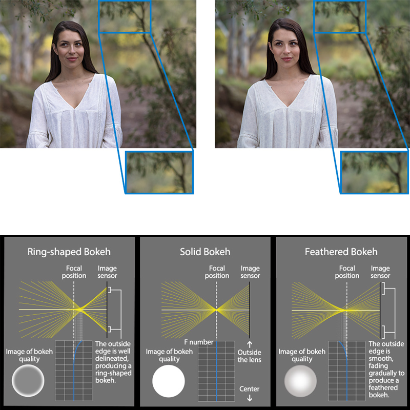 På bilden ser du ett exempel på skillnaden och vi har sett andra bilder där effekten är ännu större. Vi kommer att testa detta inom kort och släppa egna exempelbilder. Vad kan man förvänta sig och hur fungerar det? Enkelt sagt är det en fjäderslipning av ytterkanten i ett av glasen i objektivet. Det ger en mjukare och snyggare bokeh utan att du förlorar ljus. Det finns andra sätt att mjuka till bokehn, tex med ett specialglas som ger den effekten, dock med en viss ljusförlust som är klart märkbar. Feathered bokeh påverkar heller inte skärpan i bilden vilket är en fördel!