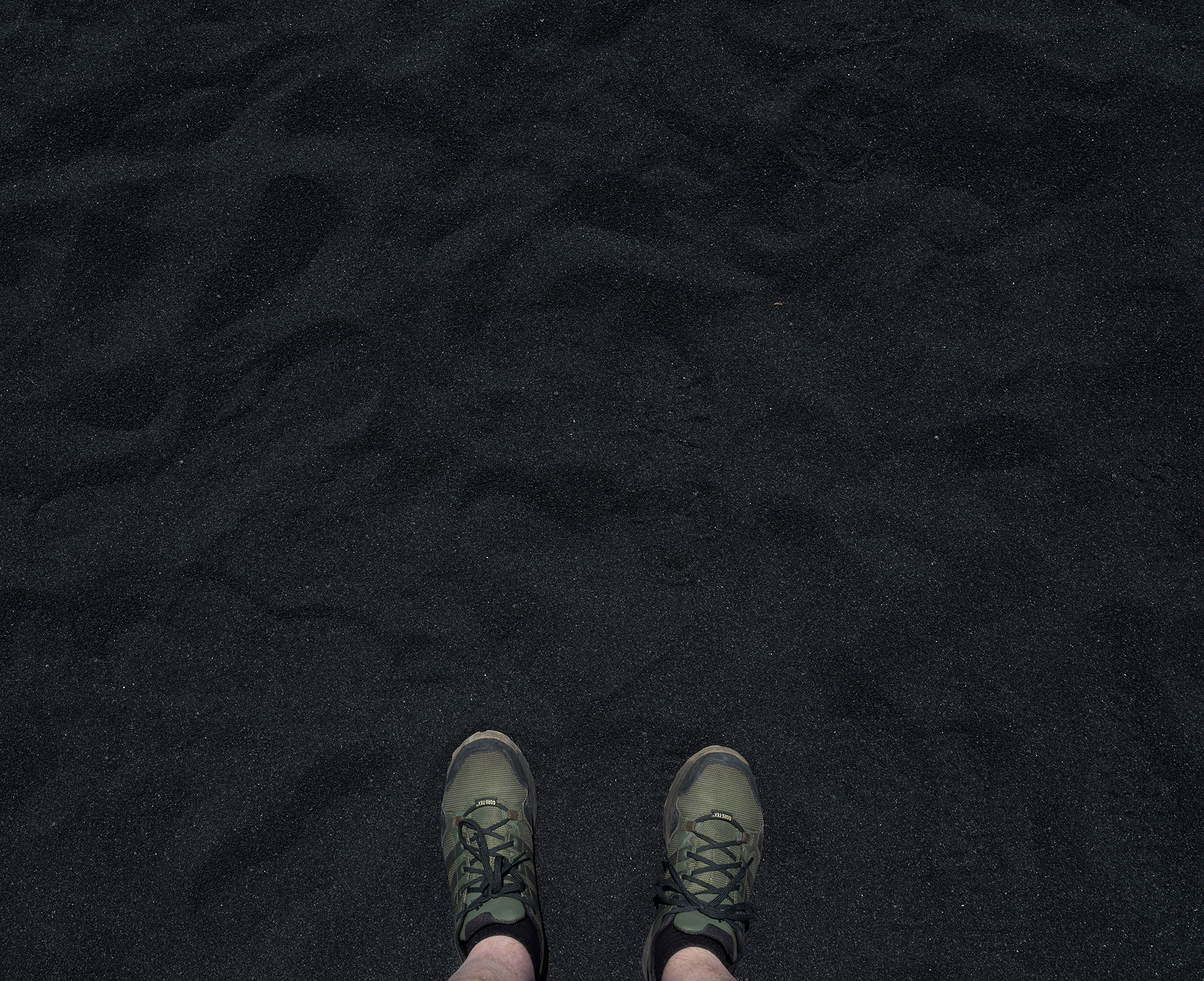 Hawaii eller Island? Båda har svarta sandstränder och jag har likadana bilder, med samma skor, men eftersom jag är barbent på denna bild så är det Hawaii.