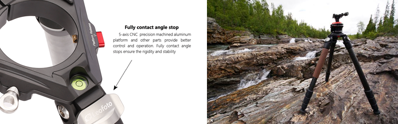 Mats skriver: Materialval är något man tar på stort allvar hos Leofoto. Man väljer de bästa tillgängliga materialen till sina stativ. Det innebär att alla metalldelar är av höggradig, precisionsfräst aluminium - som hårdeloxeras för att få en snygg och tålig finish. Benen är tillverkade i 10-lagers japansk kolfiberkomposit - vilket sägs vara marknadens bästa (de flesta andra använder kinesiska kolfiberrör idag), och skruvar är av högkvalitativt rostfritt stål. Att man fräser istället för att gjuta ger både ett hållbarare material med mindre godstjocklek och en bättre passning mellan delarna - vilket bidrar till säkrare funktion och bättre känsla.