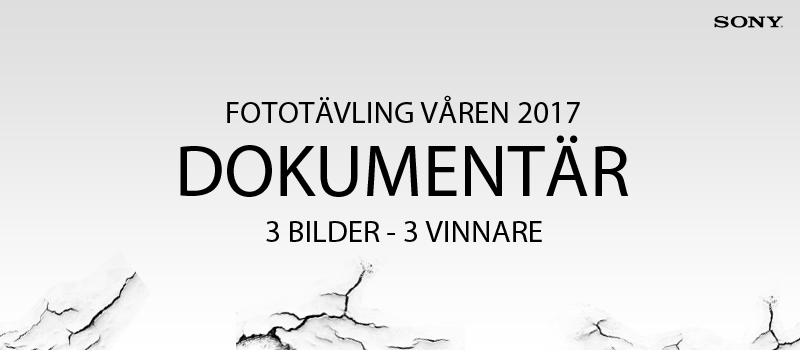Första pris är en Sony A7 II som är en av de populäraste kamerorna just nu på marknaden med sin 24 mpixel fullformatssensor och mångsidighet. Andra pris är en Sony A6300 och tredje priset är en Sony HX-90V, kompaktkameran som har "allt". Riktigt fina priser värda att arbeta för helt enkelt! Tanken men tävlingen är att utmana oss fotografer till att göra en serie på tre bilder som tillsammans skapar en helhet som vi bedömer. Temat är Dokumentär och tolkningen av temat är fritt. Lycka till med fotograferingen - spännande att se bidragen!