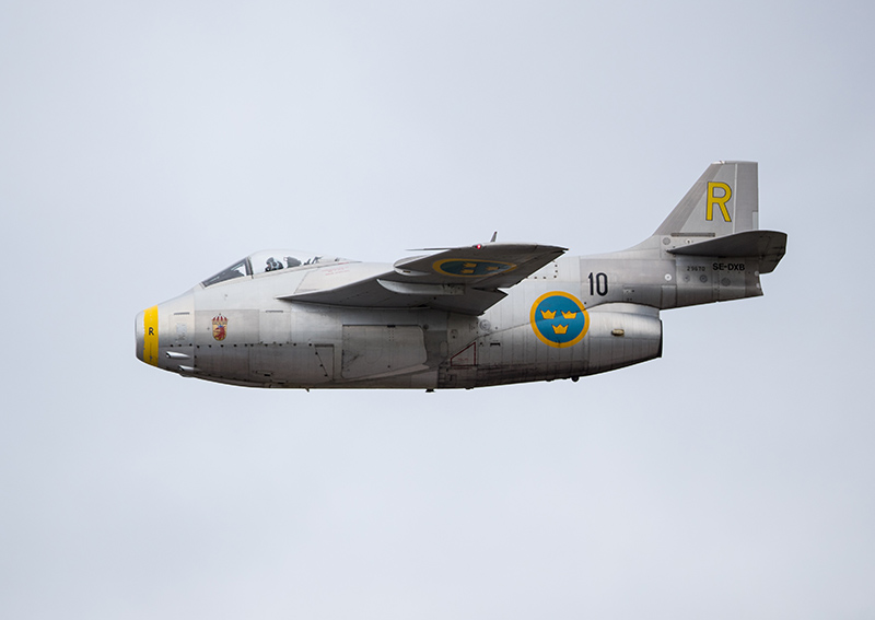 Det var förutspått regn men som tur var så regnade det inte inte under den tid flyguppvisningen var. Gråa och låga moln gav en intressant bakgrund till flygplanen, de ser nästan frilagda ut. Trots sekvenstagning i låg hastighet och de flesta bilder ändå tagna en och en, så slutade partajet med 2570 bilder ändå. Dessa blev till 127 efter mycket hård rensning och jag tänkte visa fem av dem, men det verkar bli tio bilder. Imorgon kollar vi upp och ner.