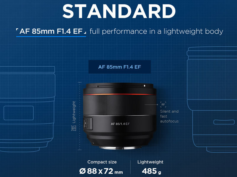 Så här skriver de själva: Nya Samyang AF 85mm f/1.4 EF erbjuder hög prestanda i en liten men tålig förpackning. Det här är objektivet för dig som är Canon-fotograf och älskar att ta porträtt med vacker bokeh i bakgrunden men ogärna släpar på onödigt tunga och skrymmande prylar i kameraväskan. Vikten är endast 485 gram och längden 72 mm. Den optiska konstruktionen är framtagen för att matcha de mest högupplösta DSLR-kamerorna med fullformatssensor, men objektivet fungerar även utmärkt på Canon-modeller med APS-C-sensor.