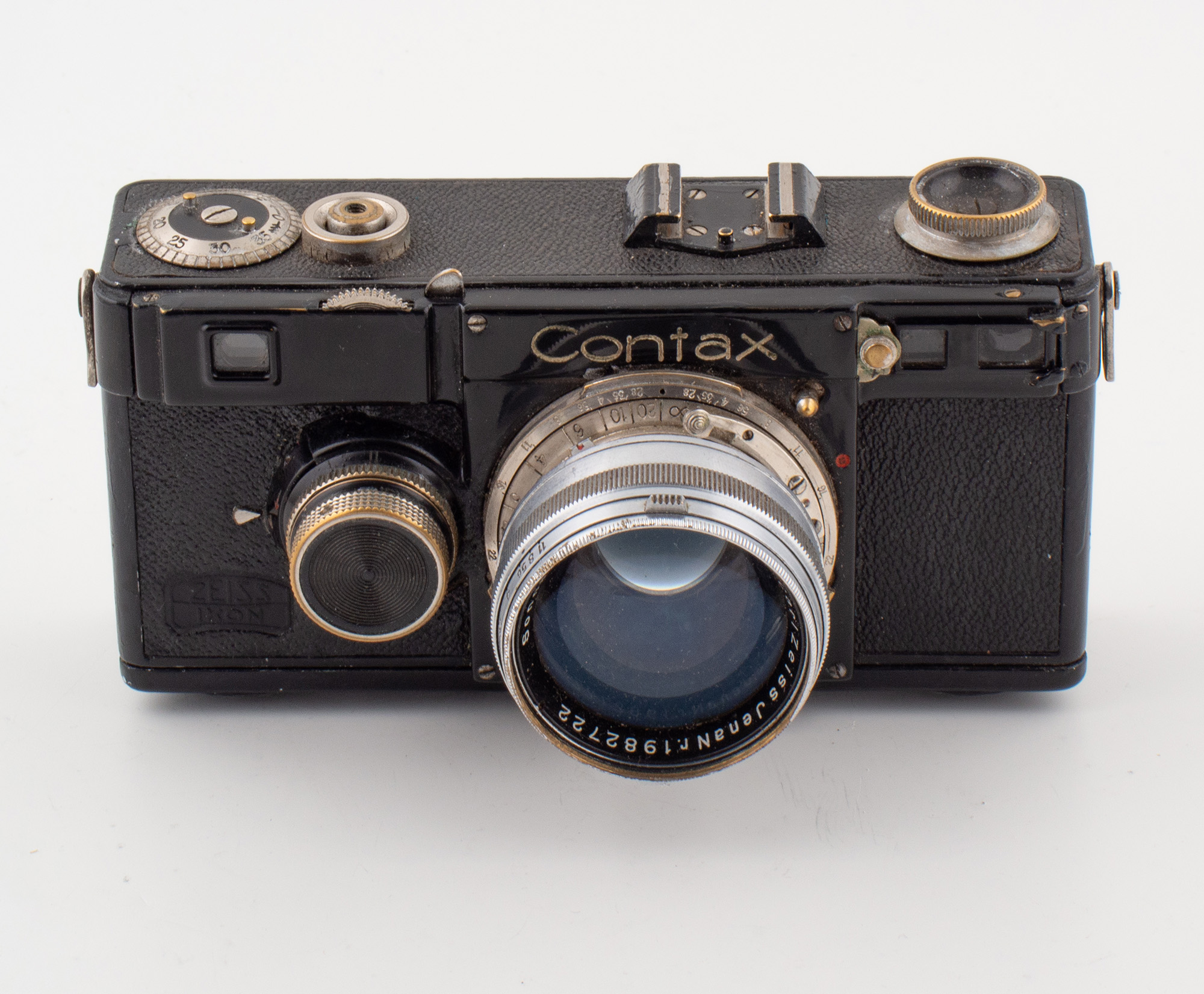 1933 Utbuktningen vid fokuseringsratten försvinner. Frontplattan med Contax-loggan blir i ett enda stycke. Långa tider läggs till. Fot läggs till isf bara meter.