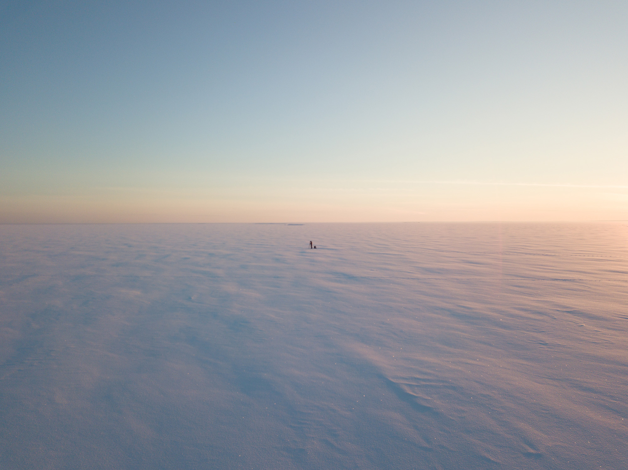 Här står fotografen för att fotografera solnedgången. Detta en bra bit ut på ett fruset hav. Bilden blev inte helt skarp vilket beror på fotografens frusna fingrar men det blev ändå ett roligt minne.