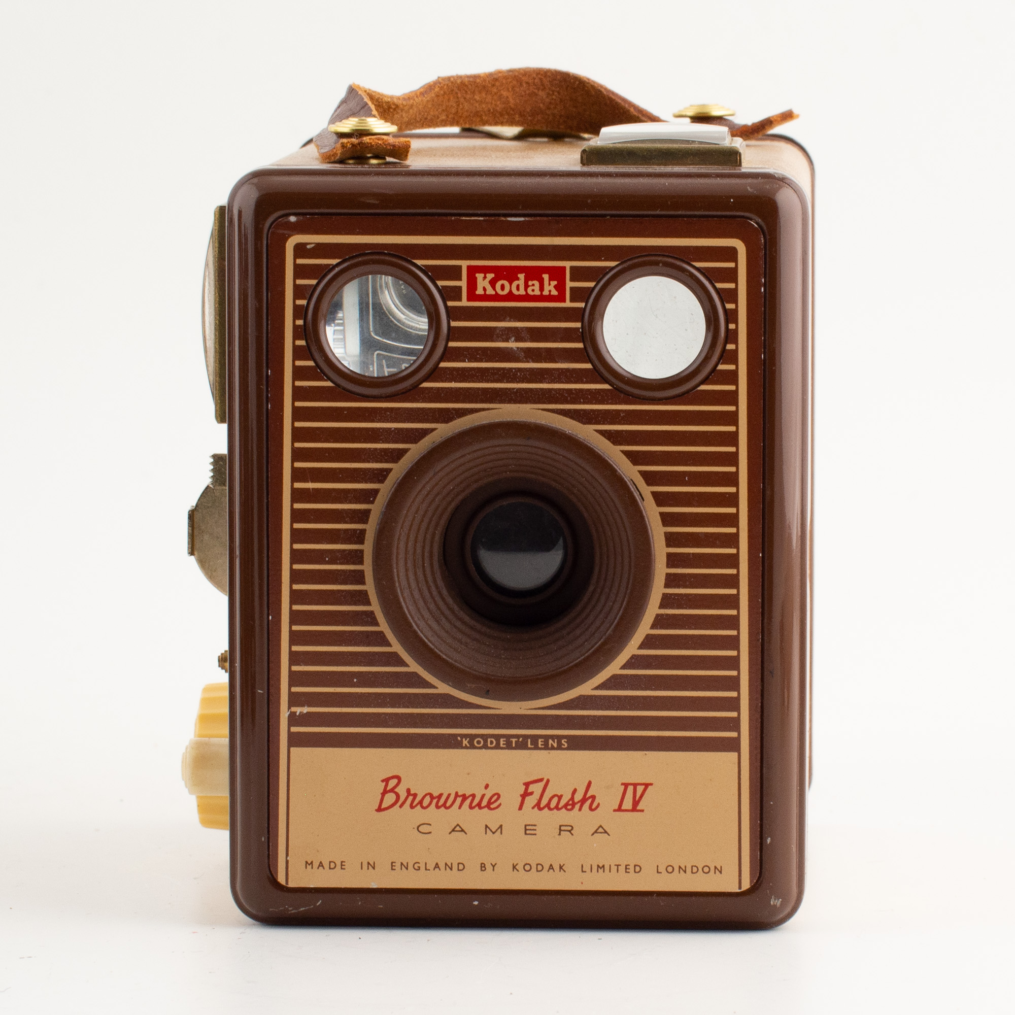 Kameran som sådan är en enkel lådkamera och den har inte heller något större värde, kanske 200-300kr. Den hade en blixt som man kunde sätta på sidan. Vi har tyvärr inte den blixten. Den krävde ett 15V batteri som idag är nästan omöjligt att få tag. Blixtlamporna var AG-3 eller AG-3B. Optiken på kameran var en Kodet med f/14. Kameran använde 620-film. Tillverkad i England 1957-1959. Eftersom den bara tillverkades i 2 år så är den inte så vanlig. Den har uttag för trådutlösare och ett stativfäste, detta gjorde den lämplig även för nattfotografering. Med den tidens fått mätt i alla fall. Bländare f/14 är ju ingen höjdare för nattfoto. Men snygg är den.