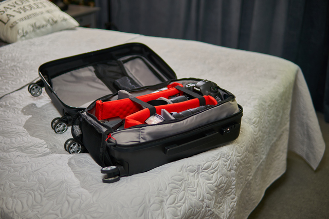 Manfrotto Pro Light Reloader Spin-55 är en rullväska utvecklad för professionella fotografer och videografer som reser mycket med sin kamerautrustning. Spin-55 följer internationellt godkänd storlek för kabinbagage.