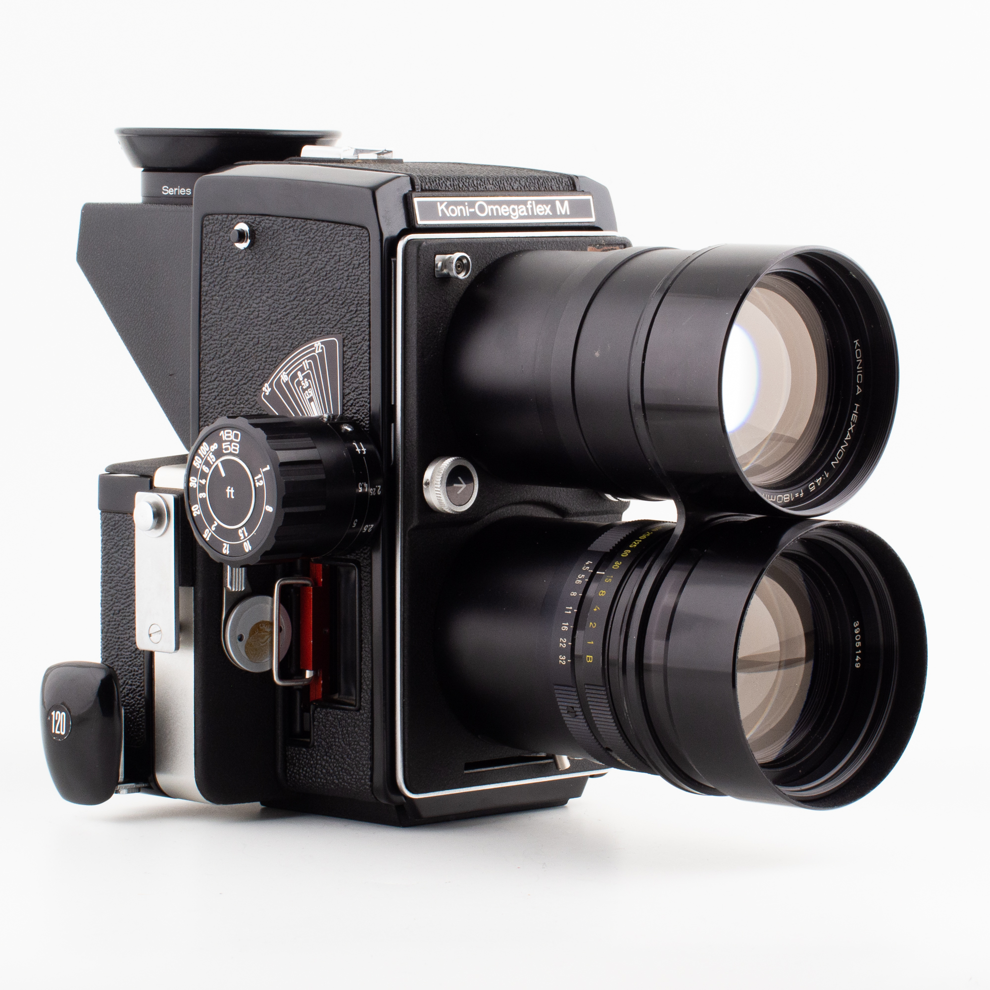 Här har vi en riktigt udda fågel i kamerahistorien. En tvåögd spegelreflexkamera med utbytbara objektiv och utbytbara bakstycken. Tillverkad av Konica för Simmons Omega Inc som ägdes av Berkey, som var en amerikansk distributör för Konica och Omega View.