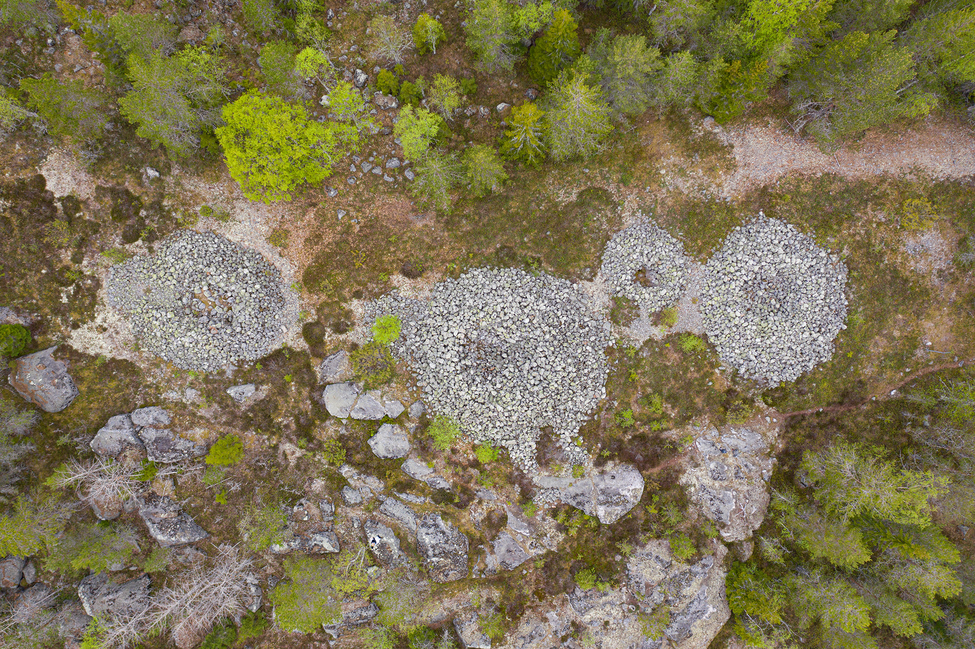 Några gravrösen mitt ute i ingenstans. En gång i tiden så gick det nog en strandlinje här. Förmodligen plundrades de för över tusen år sedan. Intressant att de finns kvar.