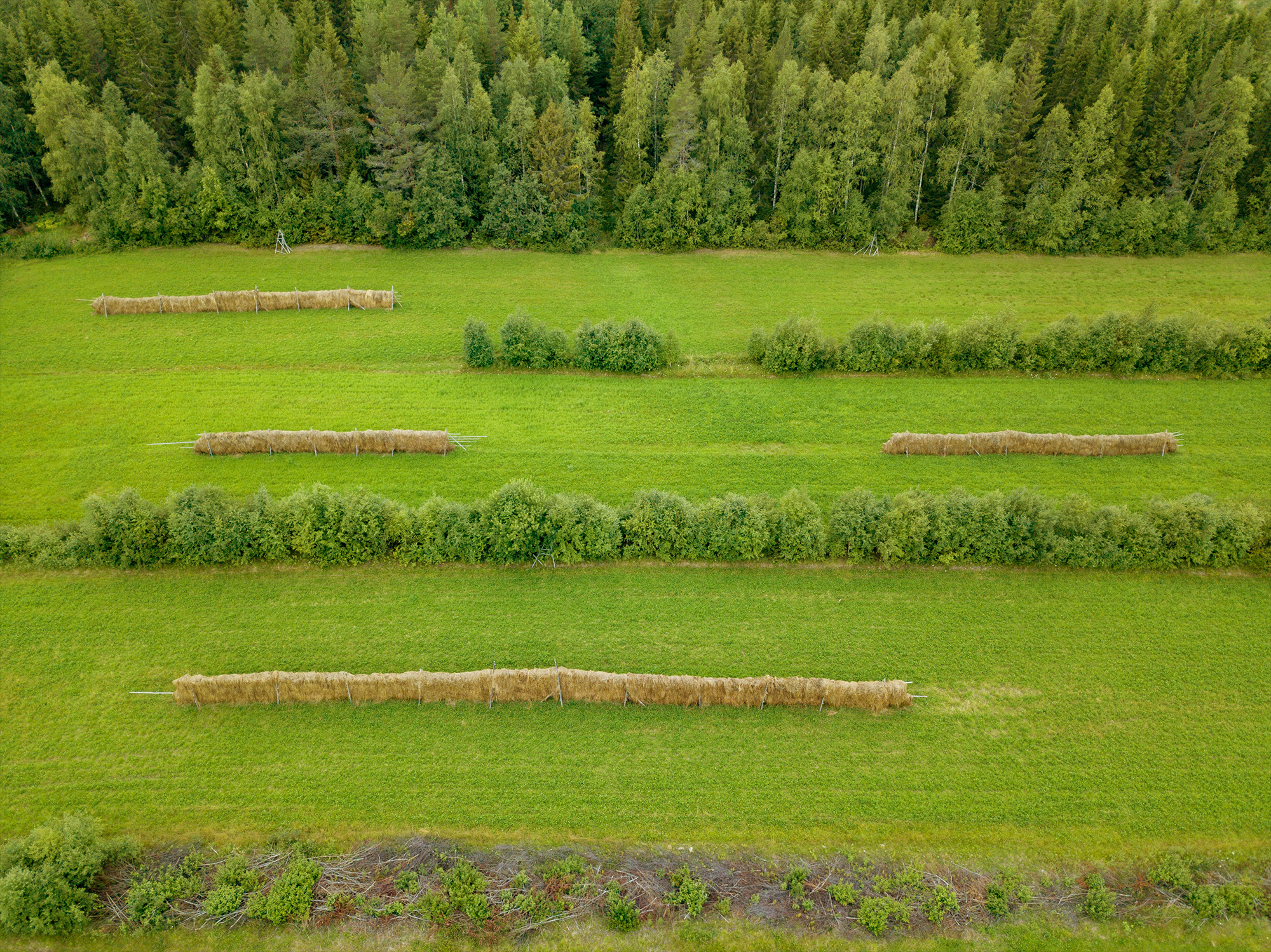 Man ser aldrig hässjor längre. Men man ska ju aldrig säga aldrig, för här är det någon som torkar hö på det gamla sättet med hjälp av just hässjor.