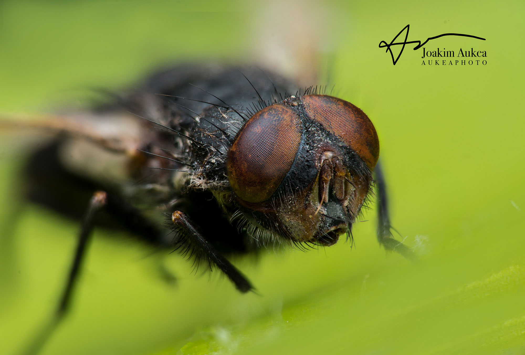 En mycket häftig makrobild på en helt vanlig fluga, bilden är uppbyggd med 15 bilder genom "focus stacking" som ger ett unikt utseende för makrobilder.