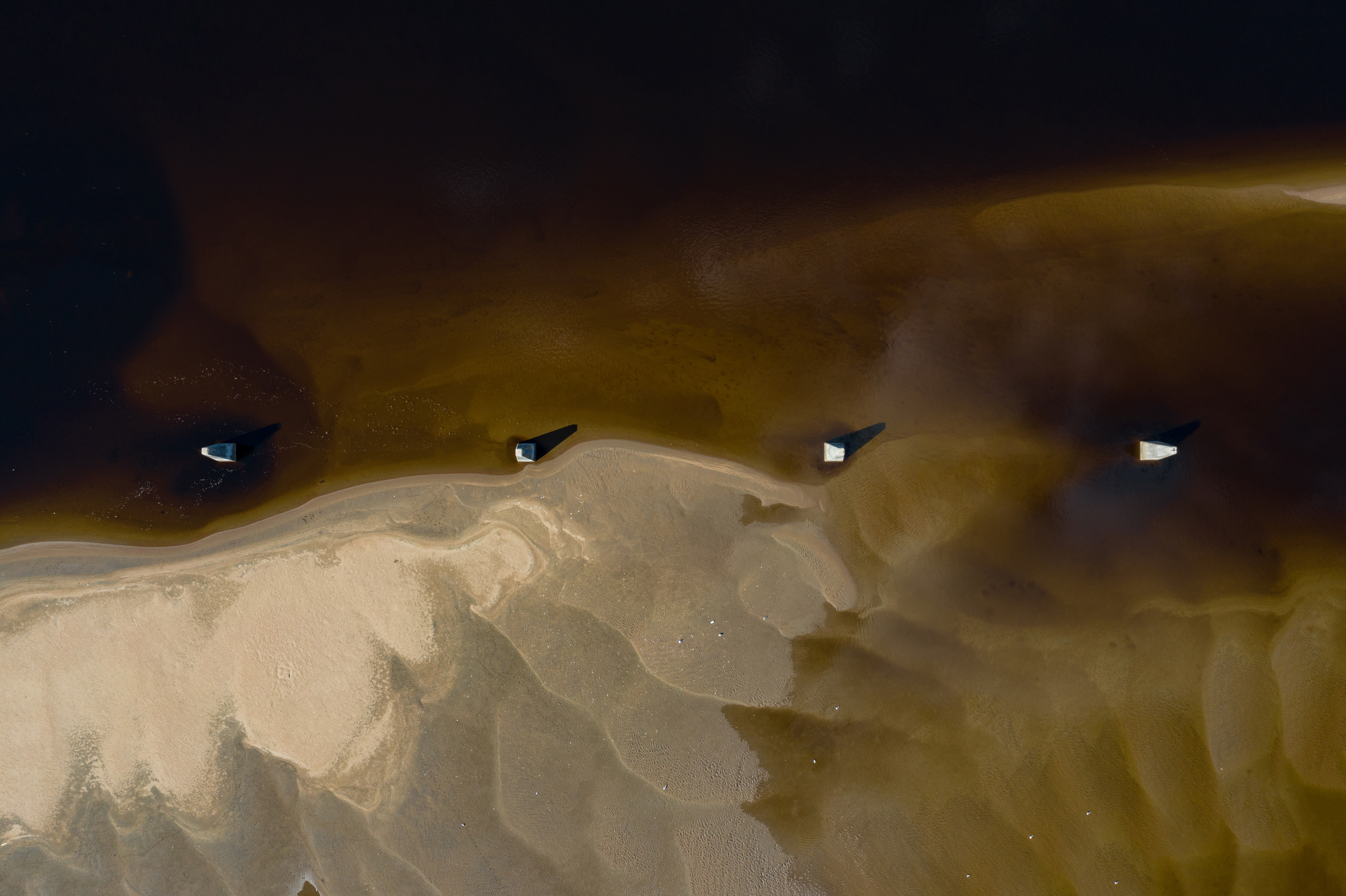 Här var det djupt en gång i tiden och flottningen var i full gång. Idag står betongplintar kvar som monument över en svunnen era. Sand som släpats med älven har lämnats vid plintarna just här och en sandbank har bildats.