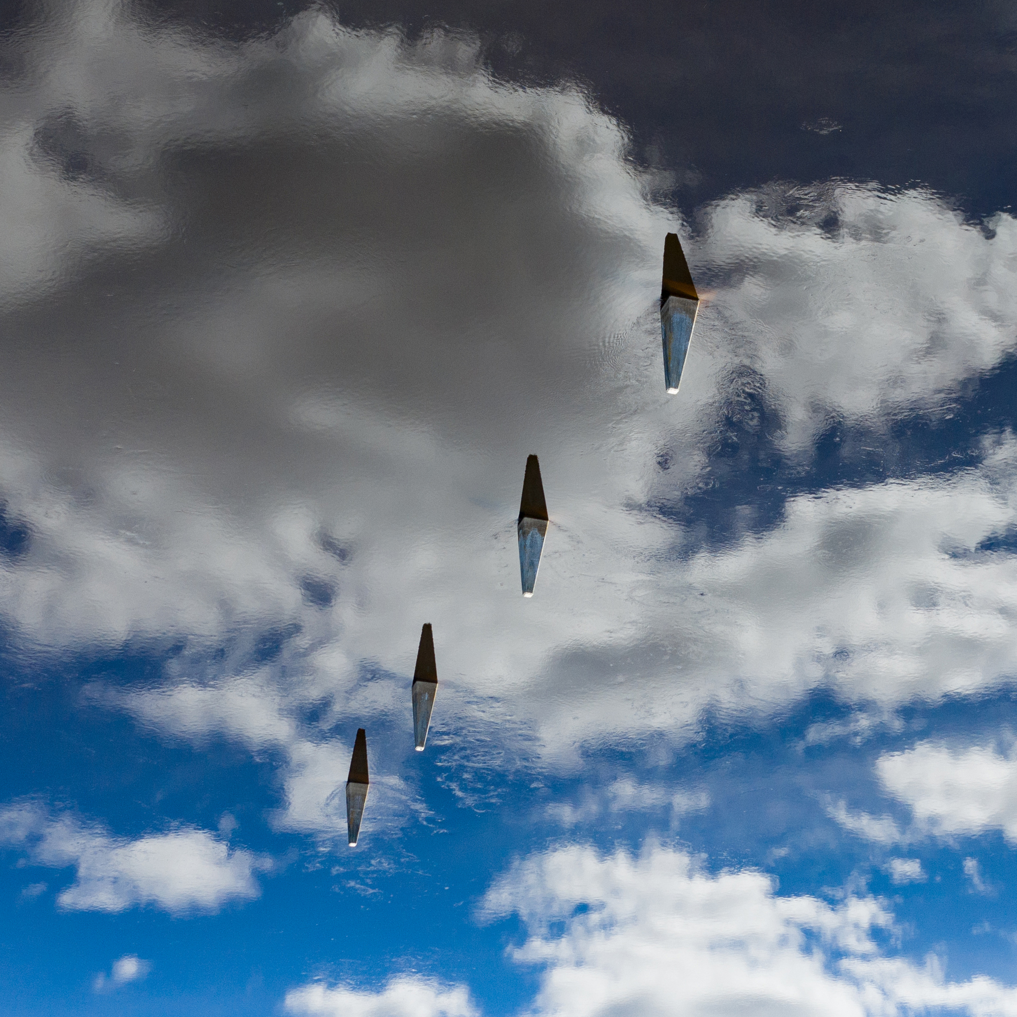 Det du ser är betongplintar från flottningen i en älv, med himlen som speglas i älven. Bilden är sedan satt upp och ner.