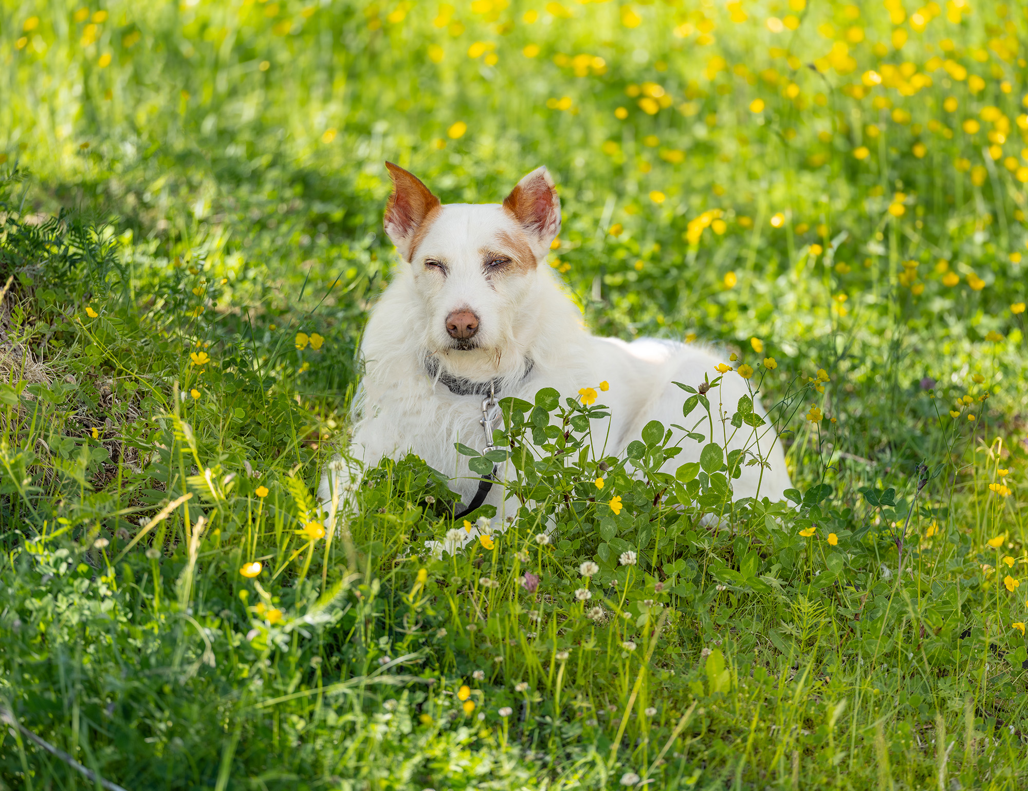 En bild ur vardagen. Ett par hade fått punktering och skulle byta däck. Jag har både luftkompressor och reparationsutrustning i bilen, så vi hjälpte dem att kunna resa vidare. Deras hund med lite tuggat öra och ögoninflammation låg i skuggan och väntade snällt. Lite okry men gullig ändå.