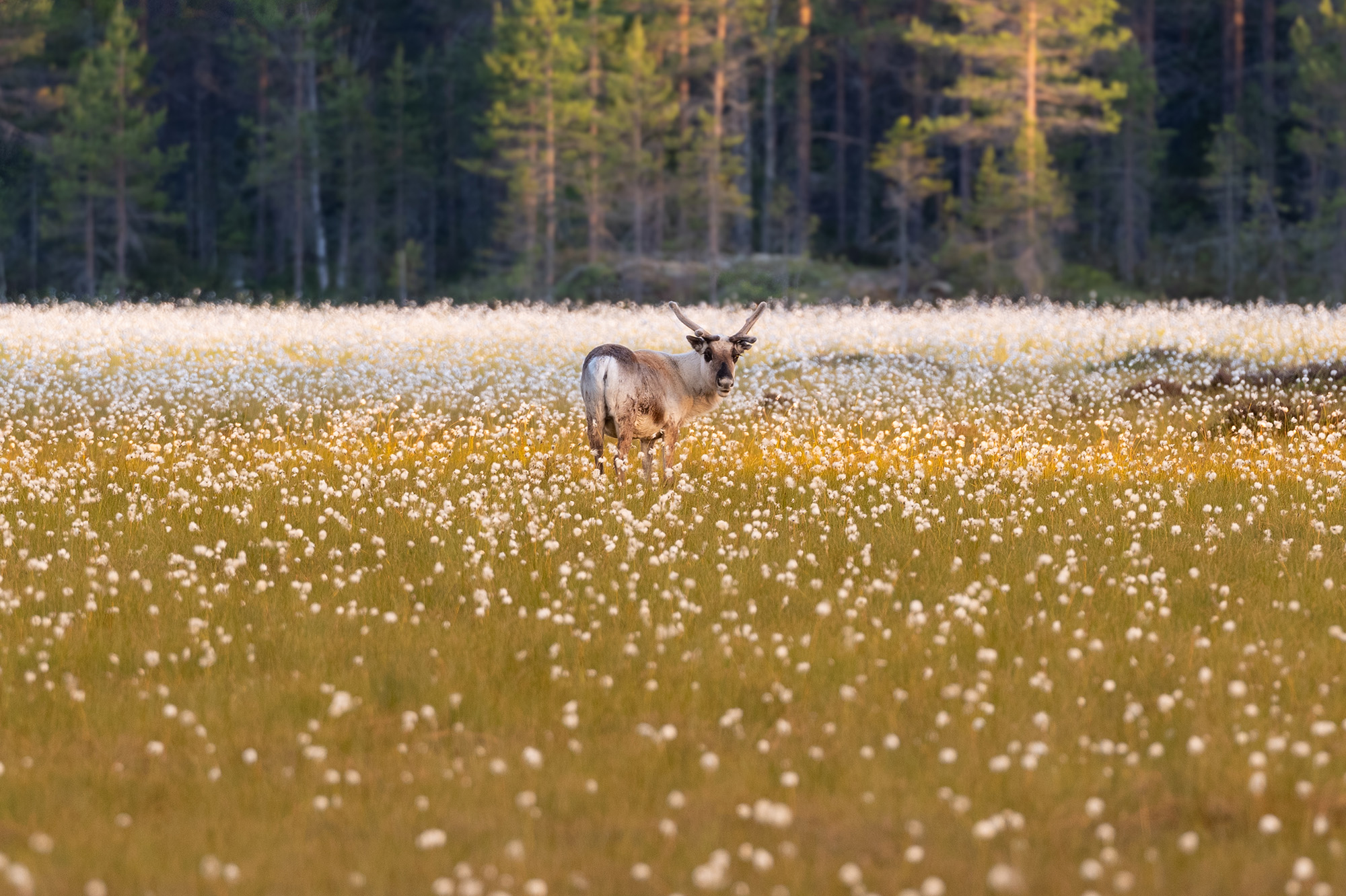 Ängsull täcker en sommaräng och mitt i allt står en ren och mumsar. Kan det bli vackrare än så? Mitt norrländska blod myser och jag konstaterar att jag trivs som bäst just nu, på denna plats med denna vy. Jag önskar att vi kunde prata med djuren för då hade denna ren fått en kram av mig.