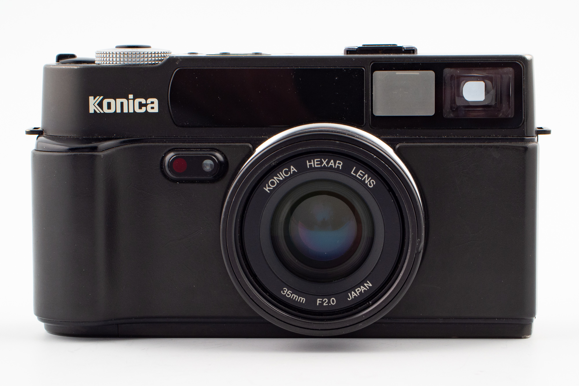 Objektivet i Konica Hexar är en 35/2, som anklagades för att vara en kopia av Leicas 35/2 då den gav liknande bildkänsla men faktum är att konstruktionen mer liknar Nikons 35/1,8 till deras tidiga S-serie från 50-talet. Hur som helst så har Hexar en fin optik. Hexar hade möjlighet till helt automatisk eller tidsautomatik samt helt manuell.