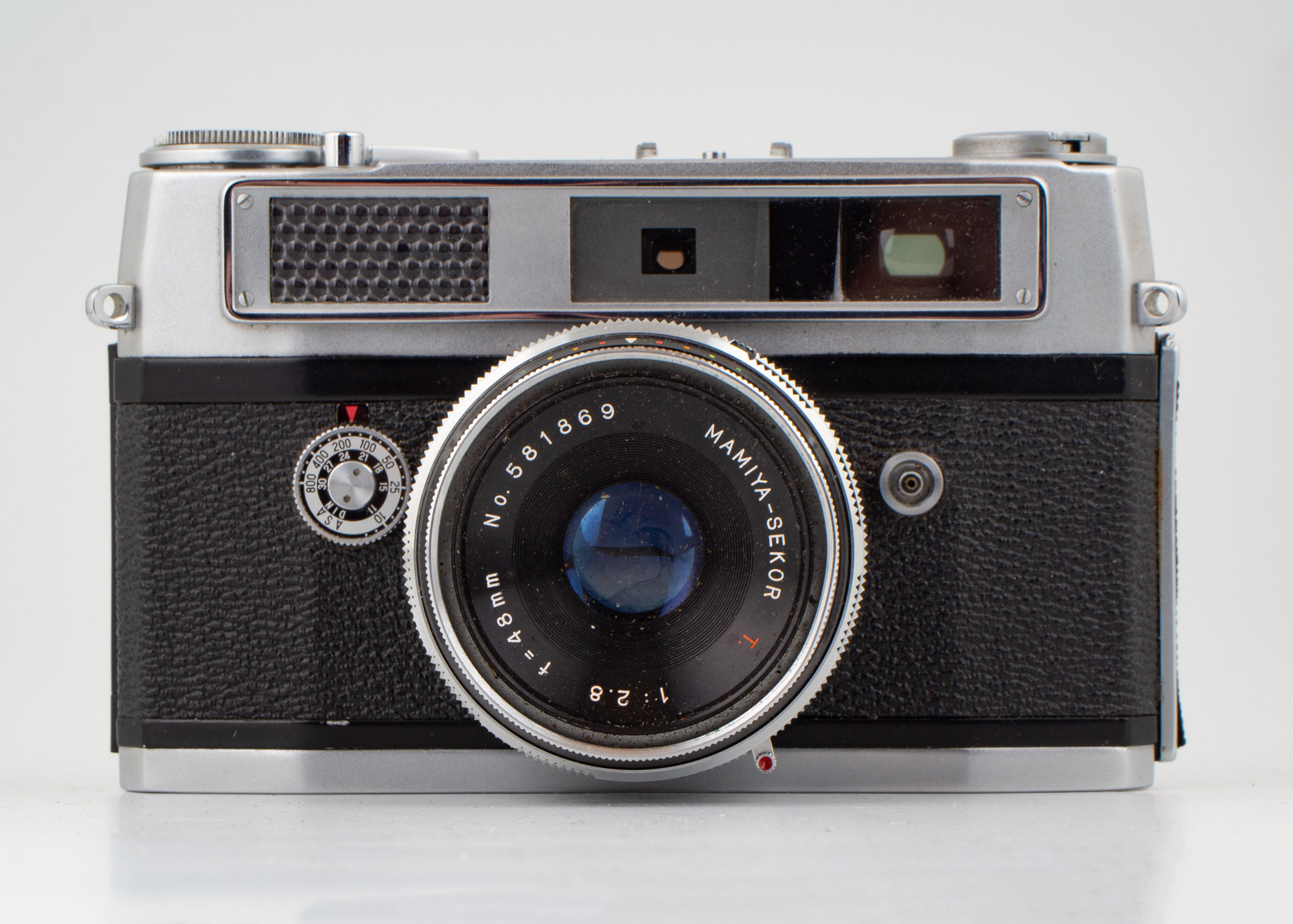 Här har vi en så kallad mätsökarkamera, då den har kopplad mätsökare. Optiken är en Mamiya-Sekor 48/2,8 som har 3 linselement i 3 grupper. Slutaren är en Copal SVK som klarar 1s - 1/500s + B. Den väger 680 gram och har måtten 79x131x72mm. Den har en ljusmätare med selen så den behäver inget batteri för att fungera. Kameran känns gedigen och välbyggd.