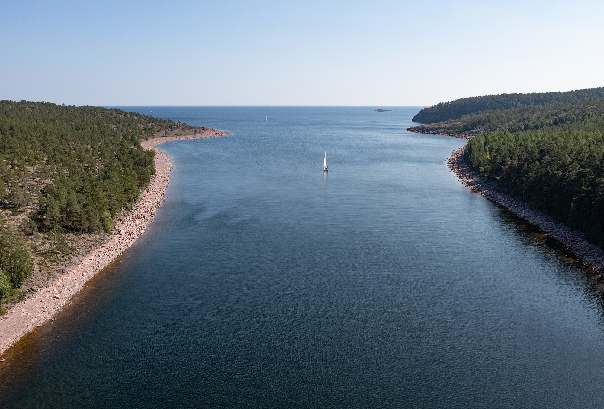 Här ser du inloppet till en vik i Höga Kusten. Jag är ingen seglare själv men när jag såg detta motiv så blev jag mycket sugen på att segla. Det ser så härligt ut, solen skiner, lagomt stora vågor och en vacker omgivning.