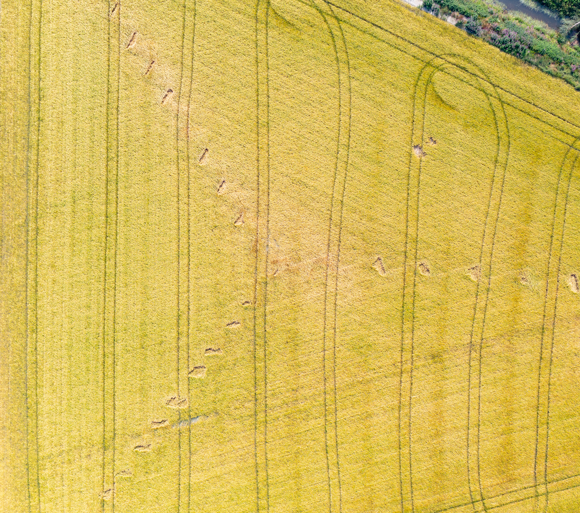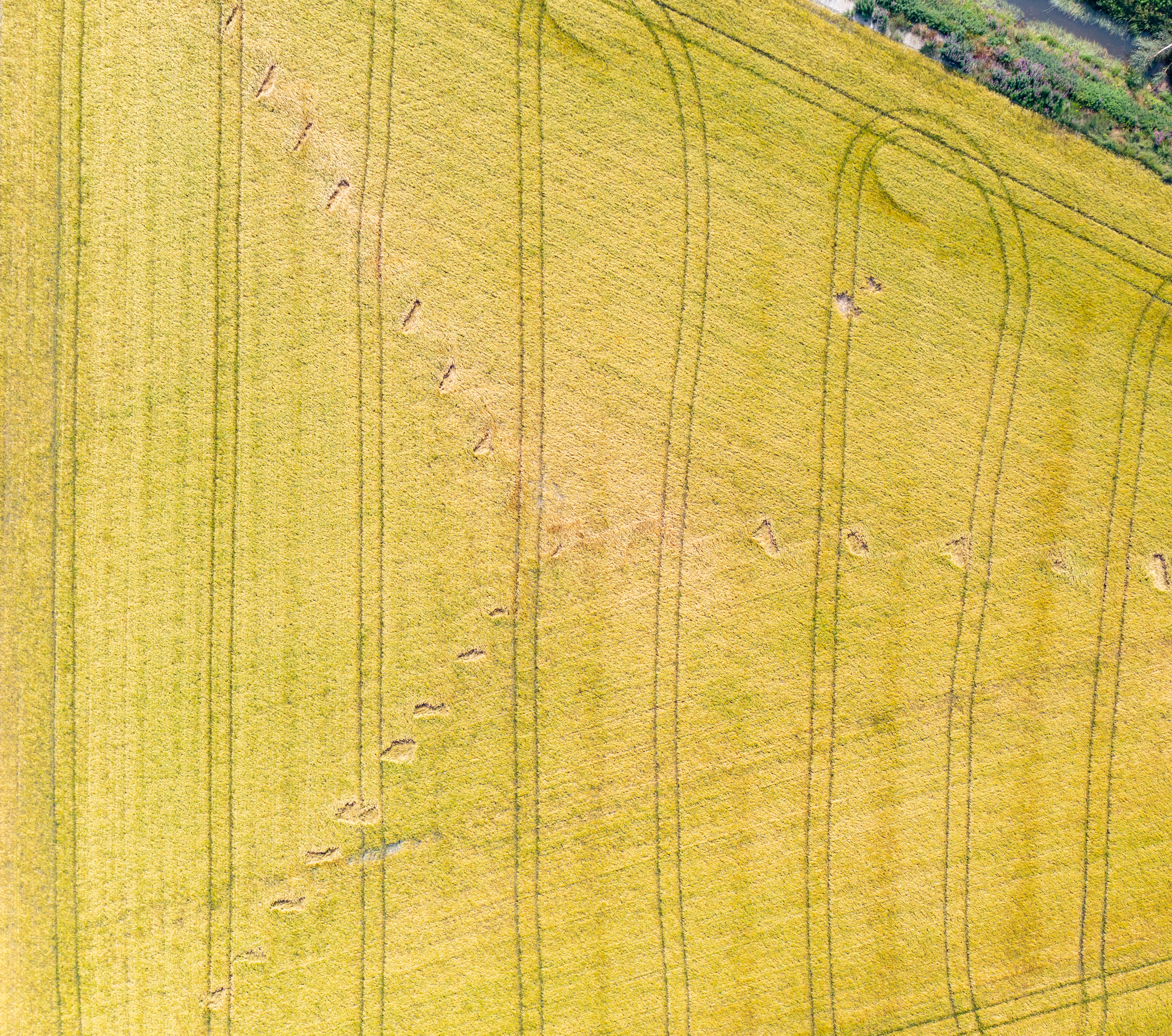 Här har ett UFO landat så på med foliehattarna! Bland hjulspåren från bondens traktor så ser man tydligt landningsställen från rymdskeppet.