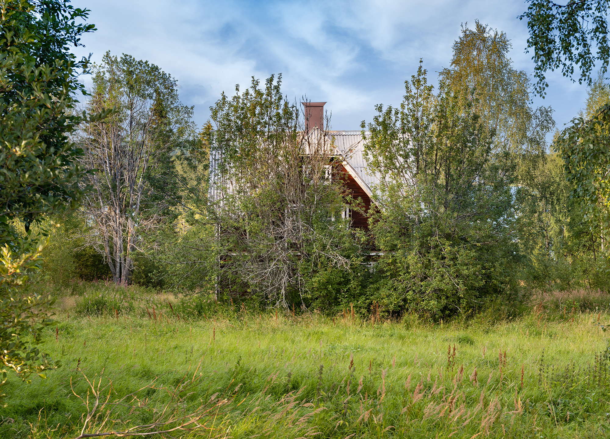Då var det dags för ett ödehus igen. Jag såg detta tack vare skorstenen som sticker upp, precis som om skorstenen vinkade och sa "Här är ett hus!". Huset var nästan helt dolt bakom träden och det tyckte jag såg lite intressant ut. Ljuset var helt fel, men när man är på road-trip så kan man inte invänta rätt ljus så jag tänkte att det huset får bli en typ Instagrambild. Jag ska förklara närmare.