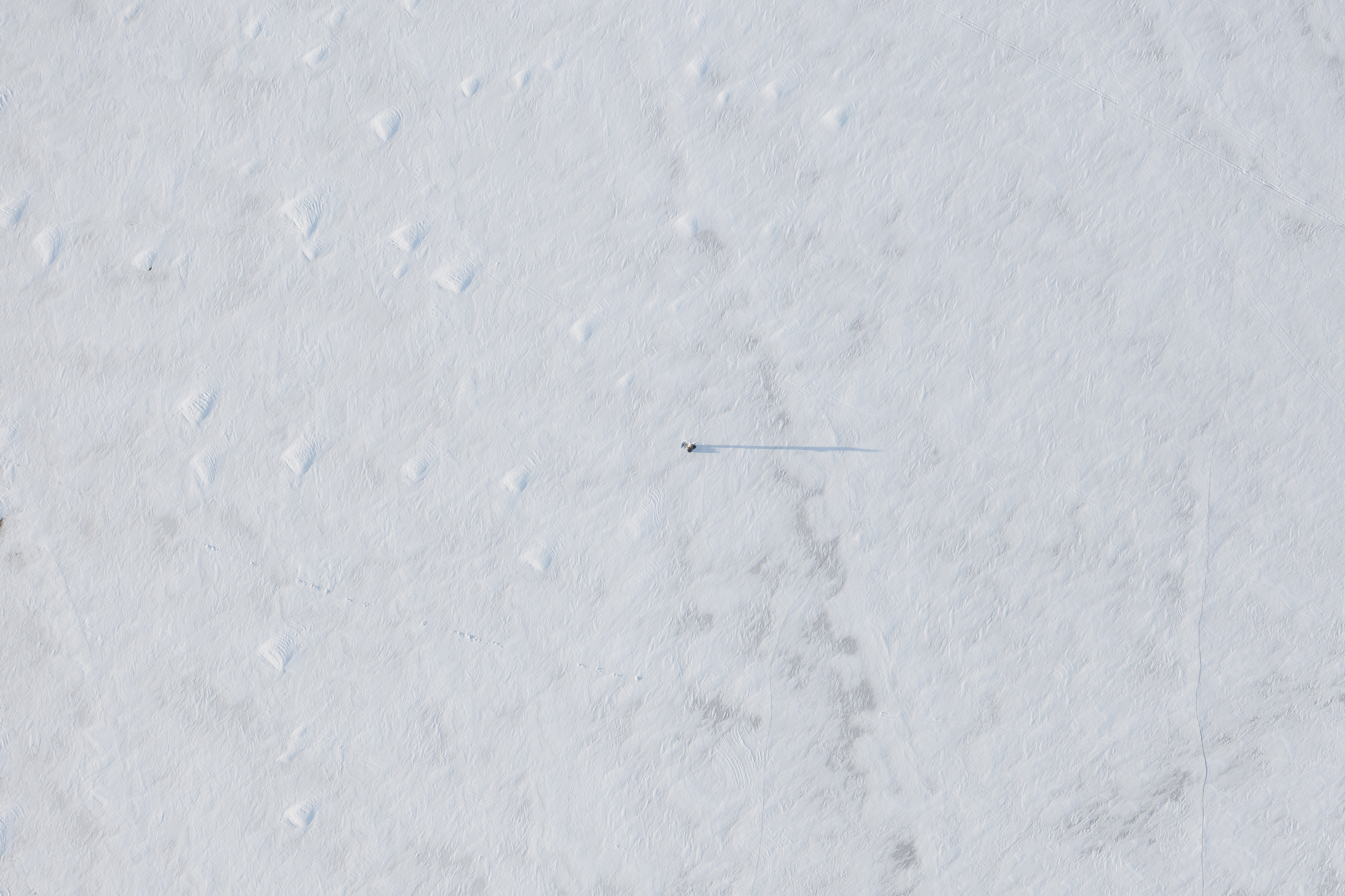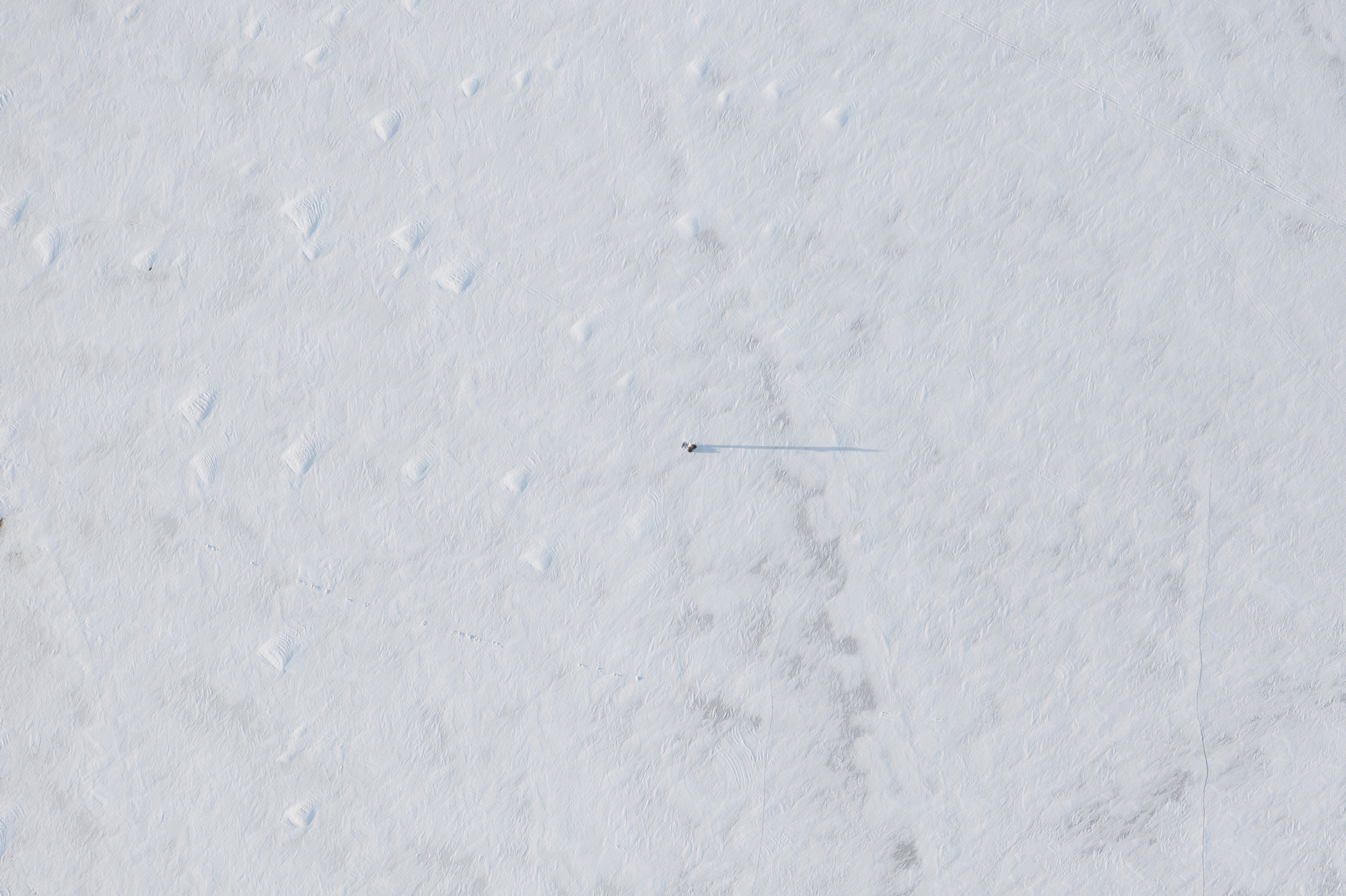 Där långt ute på isen står en man och inväntar solnedgången. Den mannen är jag. När drönaren ändå hovrar där uppe så passade jag på att ta en selfie. Blev en av de bättre bilderna på mig. Kanske skulle ha den som profilbild på facebook.