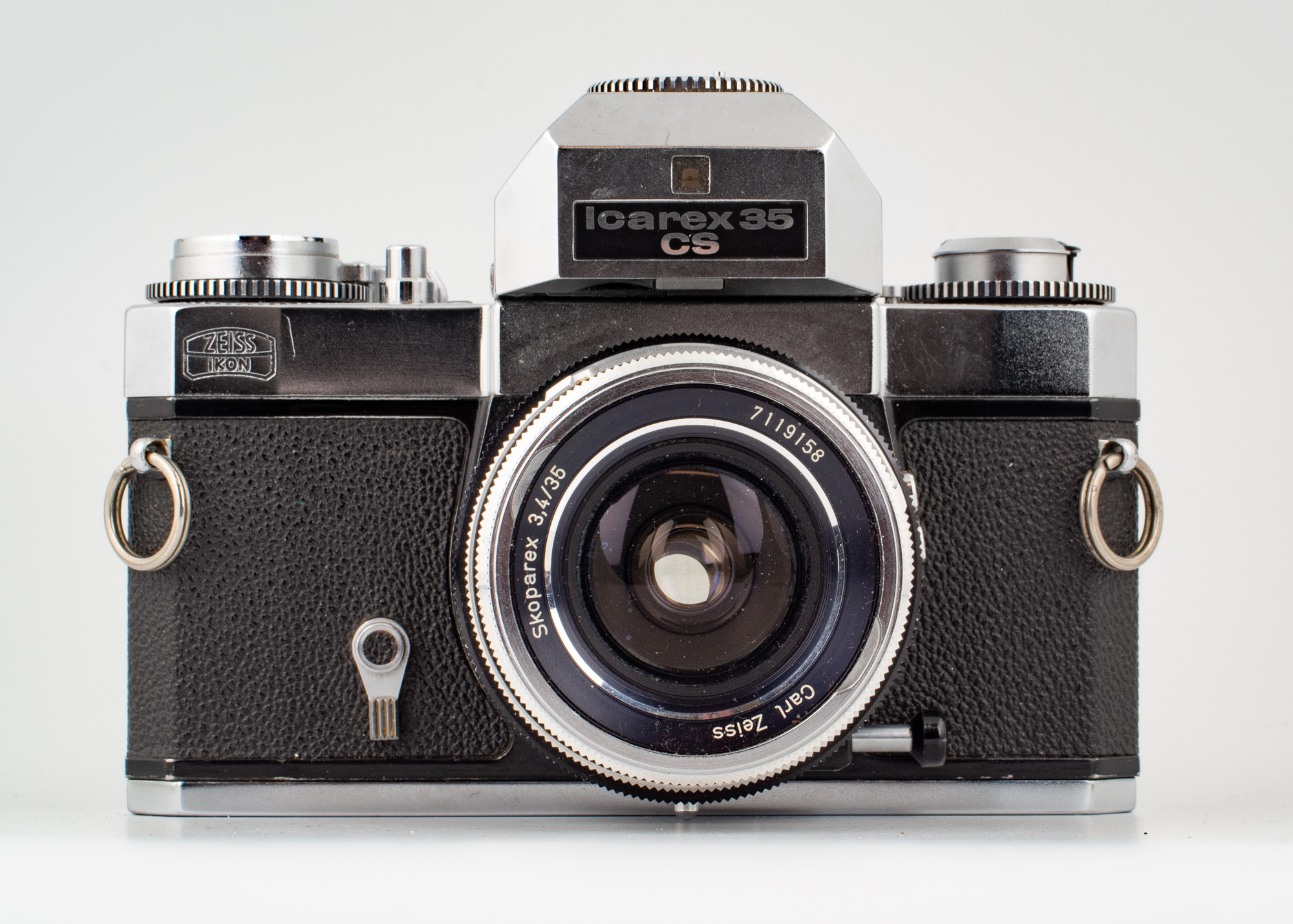 Här har vi en Voigtländer-konstruktion under Zeiss Ikons flagga och som senare var en del i att sänka Rollei. Voigtländer hade börjat konstruera denna kamera men blev uppköpta 1966 och strax därefter så lanserades denna kamera, nu med namnet Zeiss Ikon Icarex.