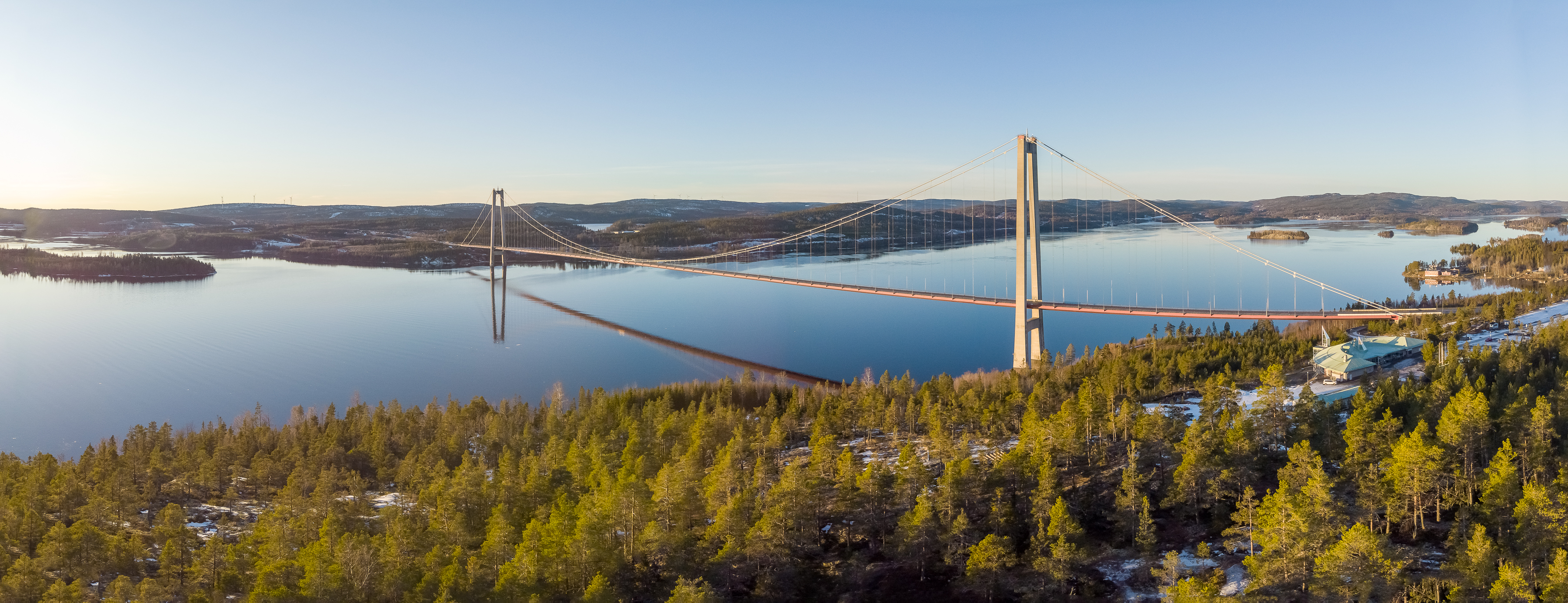 Fotograf Martin Edholm från Härnösand har skickat in denna härliga bild på Högakustenbron. Vattnet ligger ovanligt nog nästan helt spegelblankt.