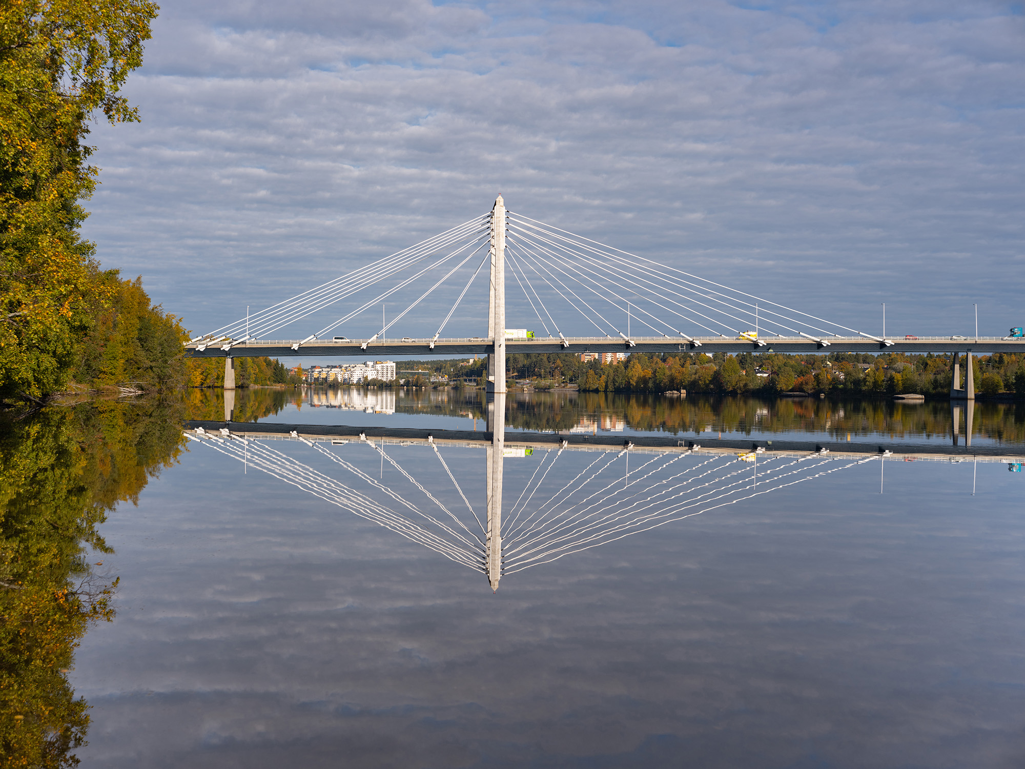 Bilden du ser här ovanför, hur skulle du beskurit den för att den ska bli bättre? Vårt svar är att beskära den på höger sida precis till vänster om den högra pelaren. Då blir du av med den avklippta långtradaren och en del störande linjer. Tyvärr blir inte mittpelarna exakt i mitten då, men det inget man tänker på i denna bild. Det kan man åstadkomma med lite mer redigering, om man nu tycker att bilden är värd den tiden. Sedan tog vi bort några av de störande bomkistorna. Allt är tycke och smak.