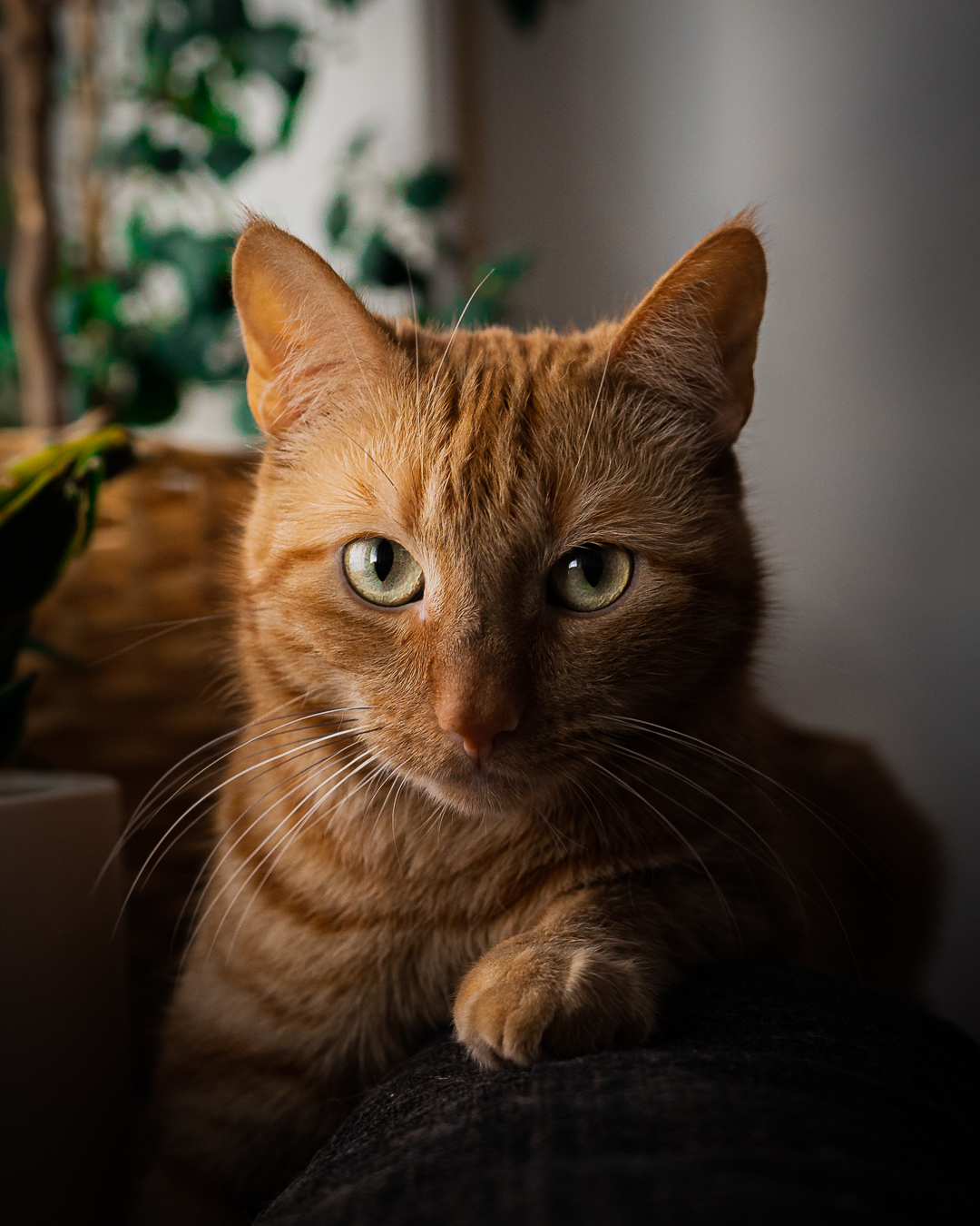 Den här bilden tog jag på min katt Link en eftermiddag när han låg och vilade på soffdynorna i vardagsrummet. Jag tilltalades av hur ljuset kom in från sidan genom fönstret och gav kattens ansikte en häftig kontrast så jag skyndade iväg och hämtade kameran för att ta några snabba bilder innan han sprang iväg.